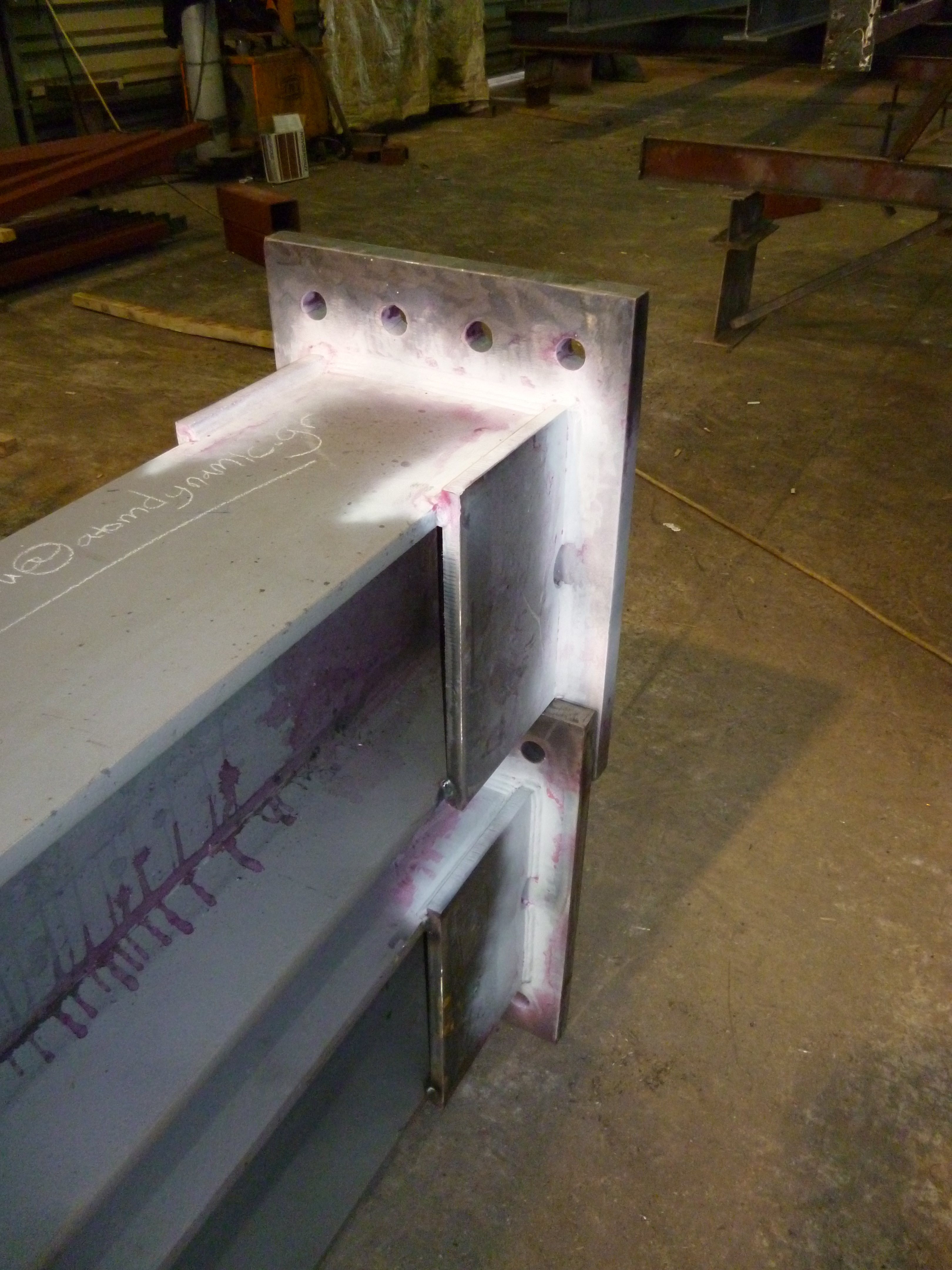 Στις ακόλουθες φωτογραφίες παρουσιάζεται ενδεικτικά μέρος της διαδικασίας μη καταστροφικών ελέγχων συγκολλήσεων στα πλαίσια της πιστοποίησης CE των παραγόμενων μεταλλικών στοιχείων.